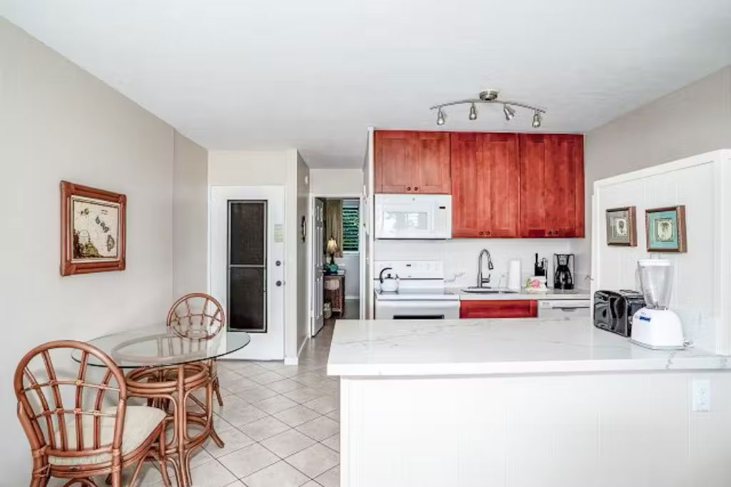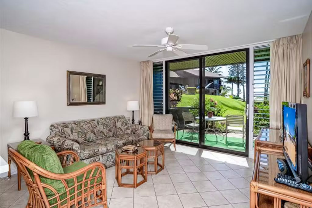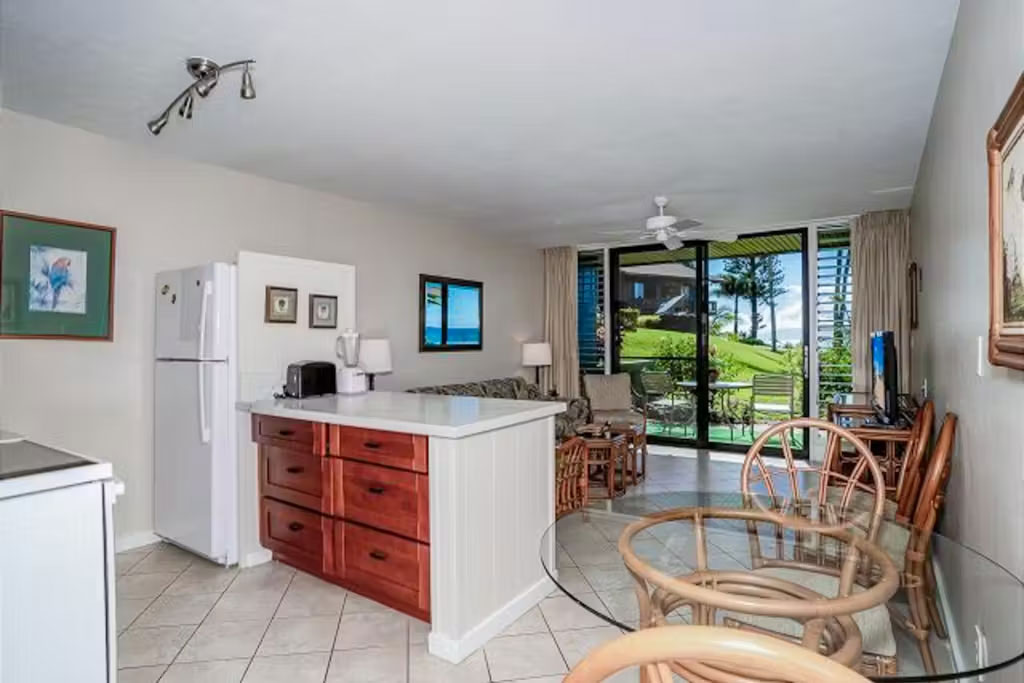 Oceanfront and filled with island vibes, this efficient condo has everything needed to make unforgettable memories and relax in style here in Lahaina. The open layout of the full kitchen and living area makes for easy conversation regardless of whether guests are cooking up tasty meals or kicking back on the sofa with a movie on the TV. Days will definitely be spent outdoors, as the private patio, shared pool, shared oceanfront grills, and beach access will keep everyone busy in the sunshine. Not to mention, you can easily share favorite memories on social media via the high-speed WiFi!
